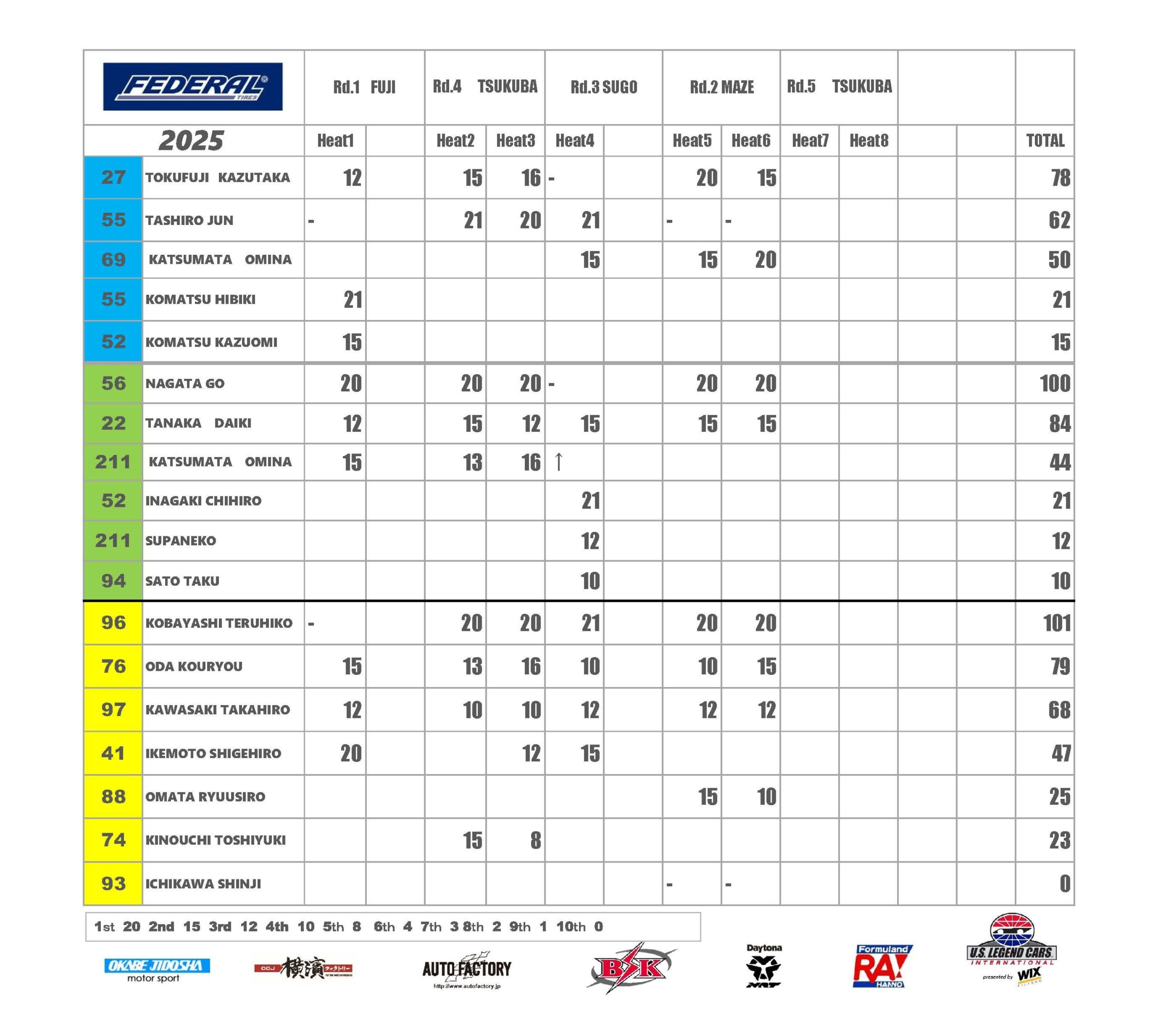2025年9月21日 第4戦 日本海間瀬サーキット 結果表